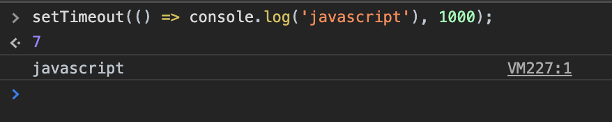 위 코드는 첫번째 인자의 함수를 1000 밀리세컨드 이후에 실행하도록 하는 코드입니다. 1000 밀리세컨드는 1초 입니다.