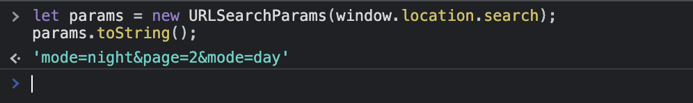 params.toString(); // mode=night&page=2&mode=day&tag=js&tag=tricks