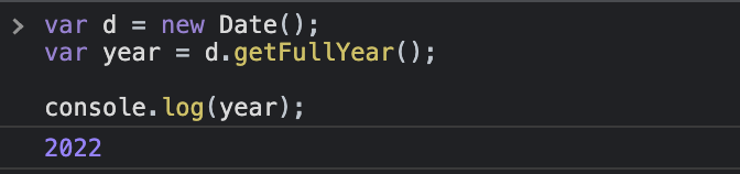 getFullYear() 메소드는 Date 객체에 설정된 연도 값을 가져오는데 사용할 수 있습니다.