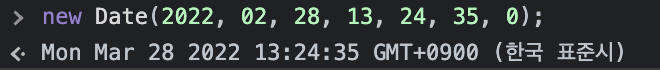 var d = new Date(2022, 02, 28, 13, 24, 35, 0);