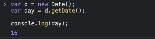 getDate() 메소드를 통해 날짜를 가져올 수 있습니다.