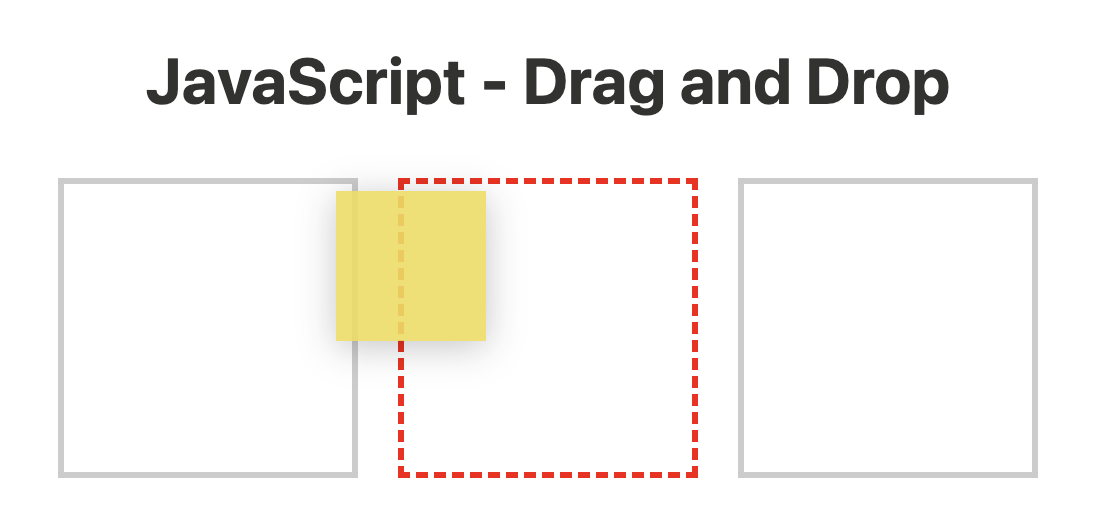 이제 드롭 타겟에 드래그 항목을 넣으면 드래그 했던 노란박스가 바로 사라지는 것을 볼 수 있습니다. 이를 해결하기 위해서는 drop 이벤트 핸들러를 정의해야 합니다.