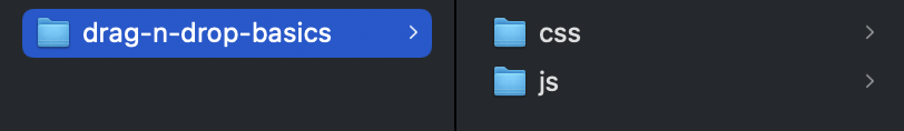 먼저 drag-n-drop-basics라는 디렉토리를 만듭니다. 이 디렉토리 안에 css와 js 디렉토리도 만듭니다.