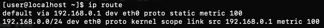 이 정보는 서버의 IP 라우팅 테이블을 보여 주며, 이는 데이터가 어디로 향할지 결정하는 데 사용되는 규칙 집합입니다. 결과로 나온 값에서 "src"가 포함된 행을 주목해야 합니다. 여기서 "src" 뒤에 오는 IP가 서버에 구성된 IP 이기 때문입니다.