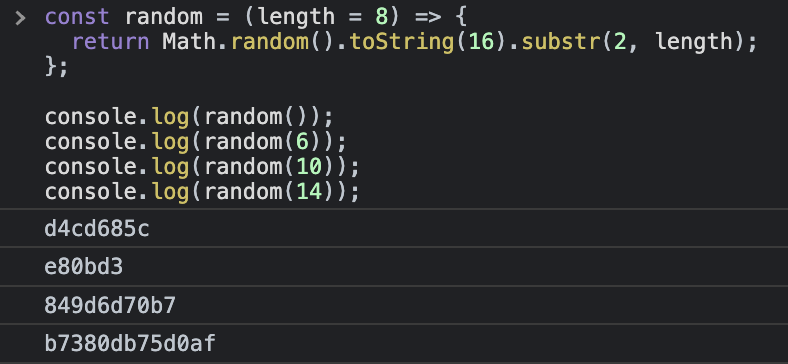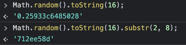 const rand = Math.random().toString(16).substr(2, 8);