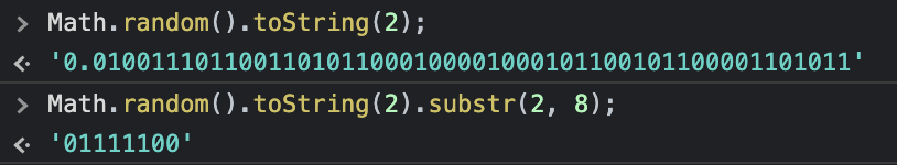 const binary = Math.random().toString(2).substr(2, 8);
