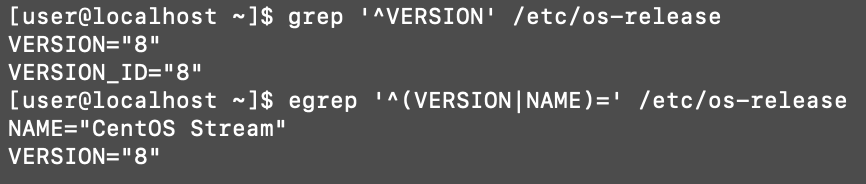 위 이미지와 같이 OS 정보가 많이 나옵니다. 여기서 grep 명령어 또는 egrep 명령어를 통해 OS 버전과 이름만 필터링할 수 있습니다.