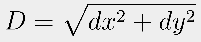 여기서 x1과 x2의 차를 구하면 dx²을 얻을 수 있고 y1과 y2의 차를 구하면 dy²를 구할 수 있습니다.