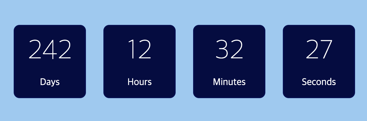 이제 기본 CSS 코드를 사용하여 웹 페이지에 예쁘게 나열해 보겠습니다. 위의 사진에서 볼 수 있듯이 각각의 시간을 담고있는 작은 박스가 네 개 있습니다. 아래 코드를 사용하여 해당 상자를 만들고 배경을 #020b43으로 설정했습니다.