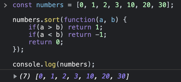 const numbers = [0, 1, 2, 3, 10, 20, 30];