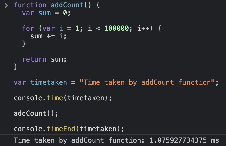 var timetaken = "Time taken by addCount function";