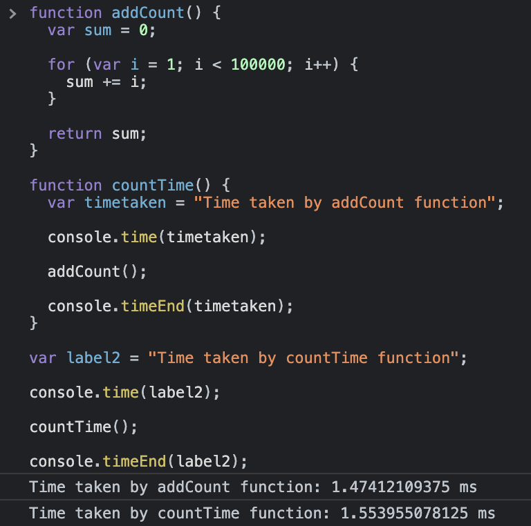 var label2 = "Time taken by countTime function";