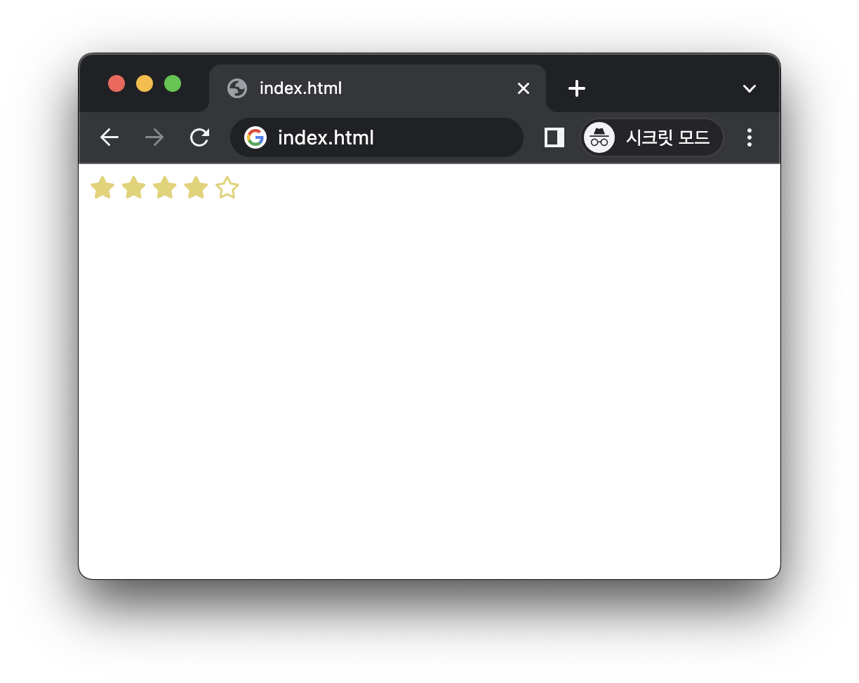 CSS 스타일을 추가하여 별을 노란색으로 만들어줍니다.