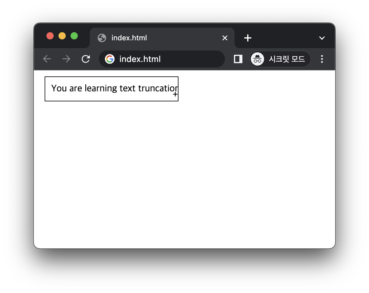 - ellipsis 문자열이 요소를 넘어가면 넘어간 부분은 잘리고 줄임표(...)가 문자열 뒤에 붙습니다.