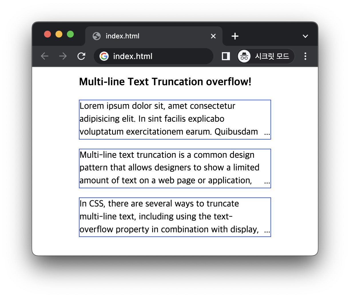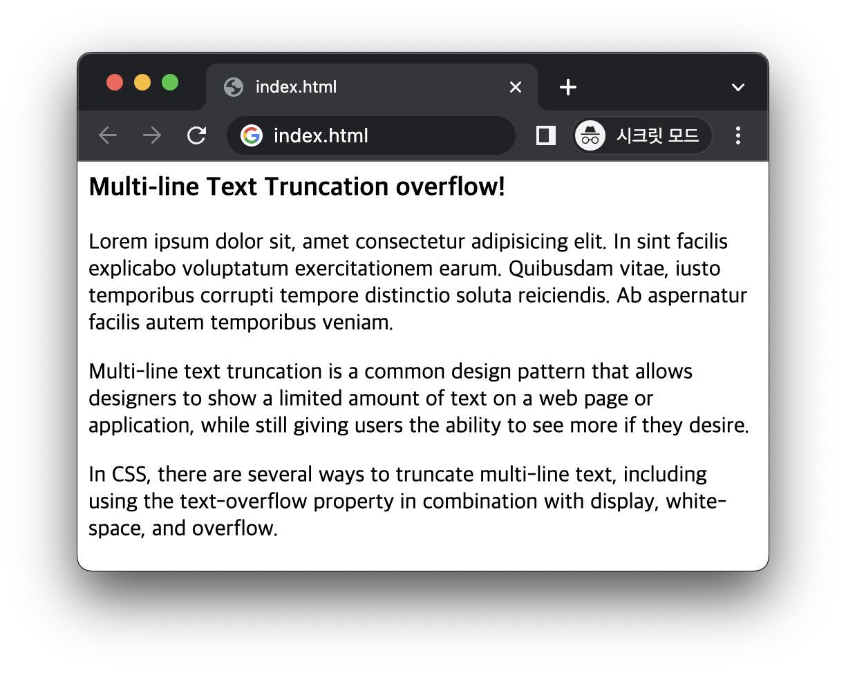 위의 CSS를 적용하면 특정 줄 수를 허용하는 문자열 숨김을 볼 수 있습니다.