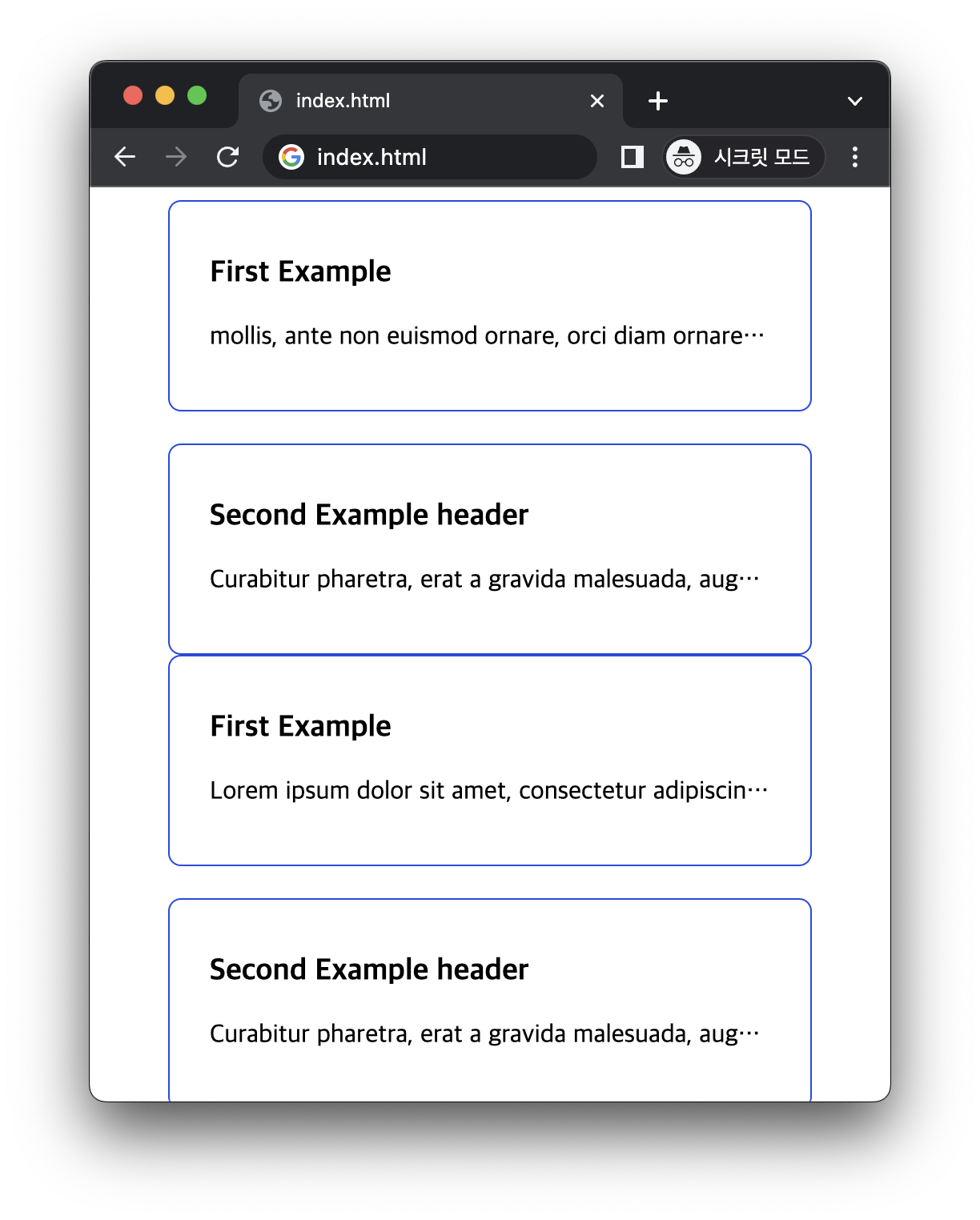 위의 CSS를 적용하면 다음과 같은 화면을 볼 수 있습니다.