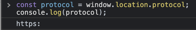 위와 같이 입력하면 현재 urld의 프로토콜(예: http, https)이 콘솔에 표시됩니다.