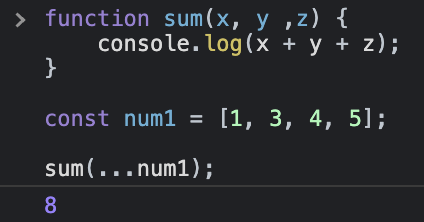 위의 예와 같이 일반 함수에 스프레드 연산자를 사용해 인수를 전달하는 경우 함수는 필요한 값만 받아들이고 나머지는 무시합니다.