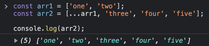 const arr2 = [...arr1, 'three', 'four', 'five'];