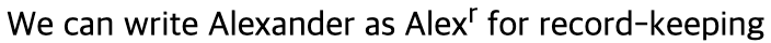 <p>We can write Alexander as Alex<sup>r</sup> for record-keeping</p>