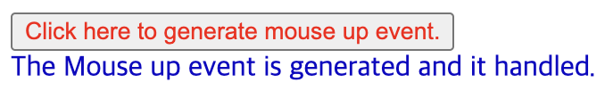 <button onmouseup="funHandler()" style="color:#FF0000"> Click here to generate mouse up event. </button>