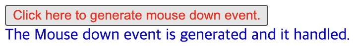 <button onmousedown="funHandler()" style="color:#FF0000"> Click here to generate mouse down event. </button>