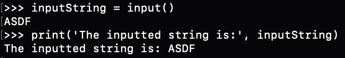 print('The inputted string is:', inputString)