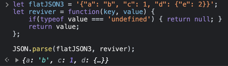 기본 reviver 기능이 처리할 수 있는 것보다 더 전문적인 데이터 변환이 필요한 경우 안전한 파싱을 위해 두 번째 매개변수로 reviver 기능을 추가해야합니다.