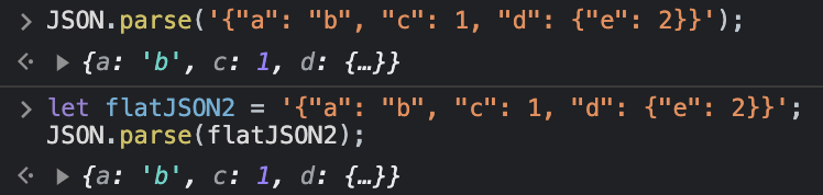 let flatJSON2 = '{"a": "b", "c": 1, "d": {"e": 2}}';