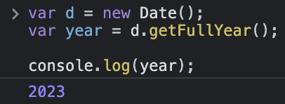 Date 객체의 getFullYear() 메소드로 연도를 얻을 수 있습니다.