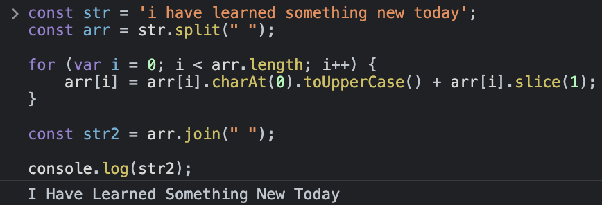 const str = 'i have learned something new today';
