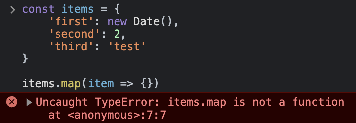 자바스크립트에서 객체는 map(), forEach(), for...of loop를 사용하여 루프를 돌 수 없습니다.